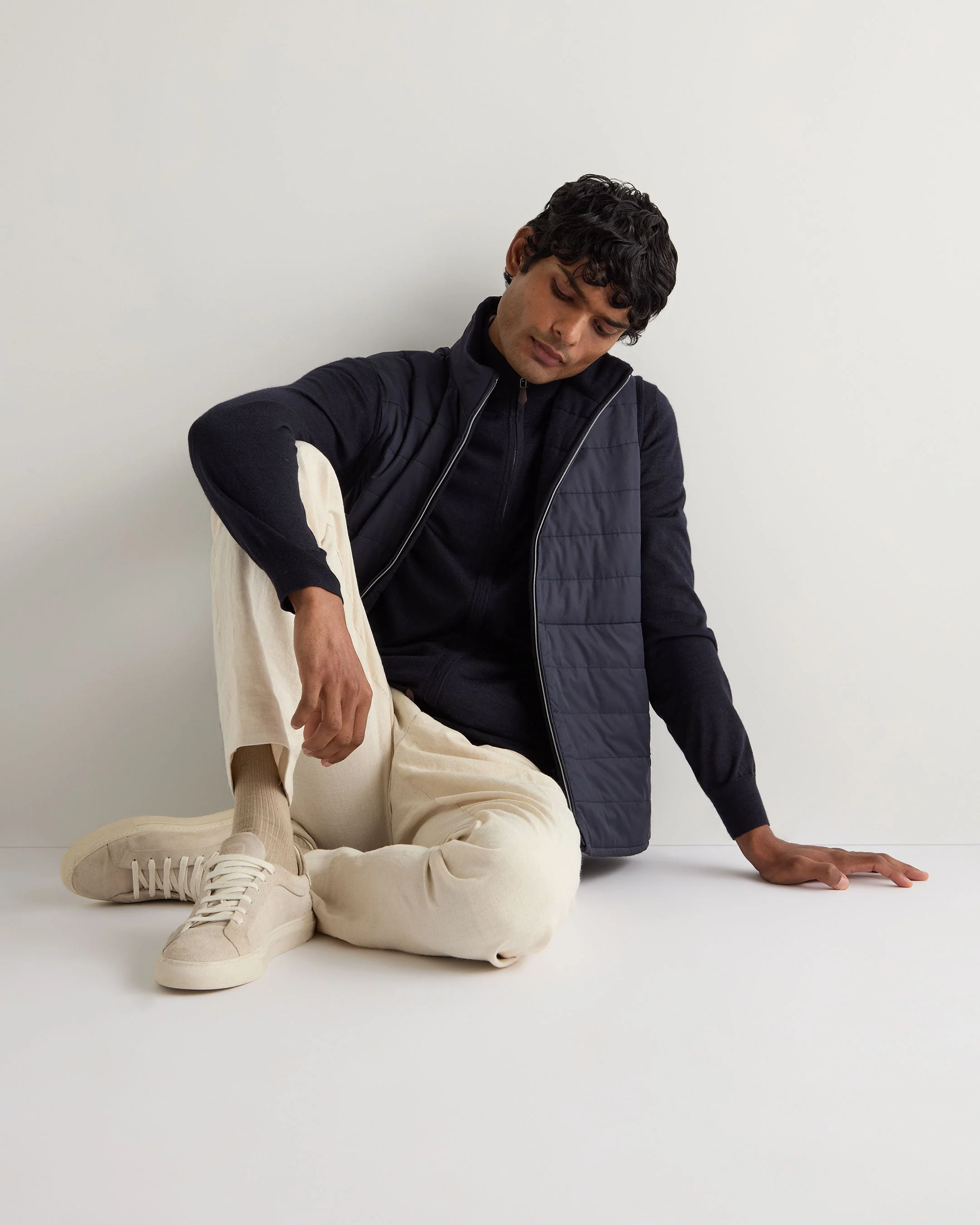 A masterclass in refined ease, this fine-gauge full-zip is the definition of versatile sophistication. Knitted from a luxurious blend of 70% cashmere and 30% silk, it delivers a smooth, supersoft feel that transitions effortlessly between relaxed and refined moments.