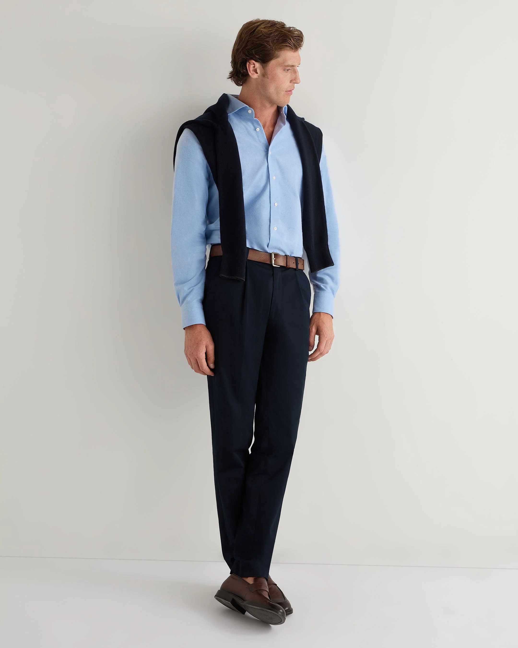 A modern staple with an elevated edge, this brushed cotton shirt brings effortless refinement to both everyday moments and life on the move. Crafted from 100% brushed cotton, it feels exceptionally soft against the skin while maintaining a clean, tailored silhouette — ideal for travelling, smart-casual evenings, or layering beneath knitwear when temperatures drop.