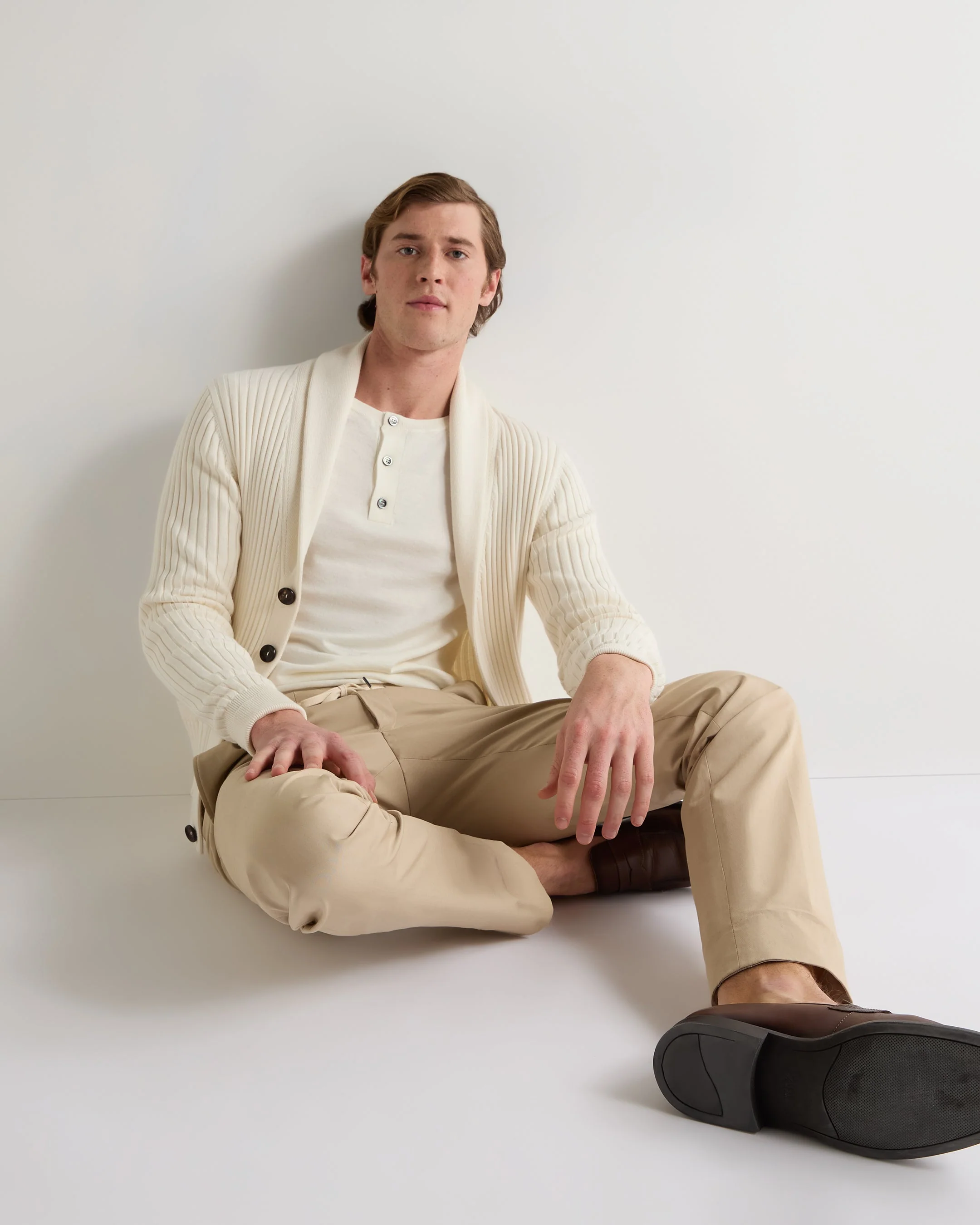 007 Round Neck Cotton Cashmere Henley New Ivory White